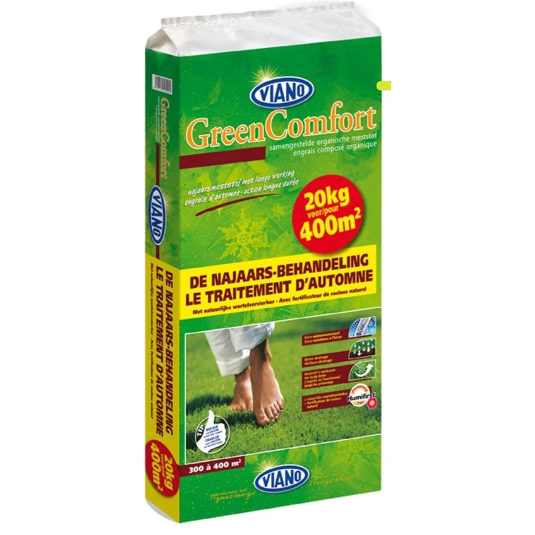 Productinformatie "Viano najaarsmeststof 20kg voor 400m² - GreenComfort met humifirst - Gazonmeststof"